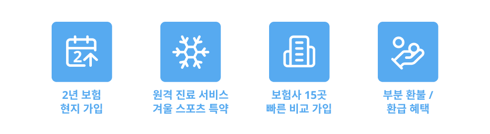 - 저희의 홈페이지에선 현지 회사 15곳의 다양한 보험 상품을 빠르게 비교 후 바로 가입하실 수 있습니다. 각 사이트를 돌아다니며 손품 파는 시간을 절약할 수 있어요.